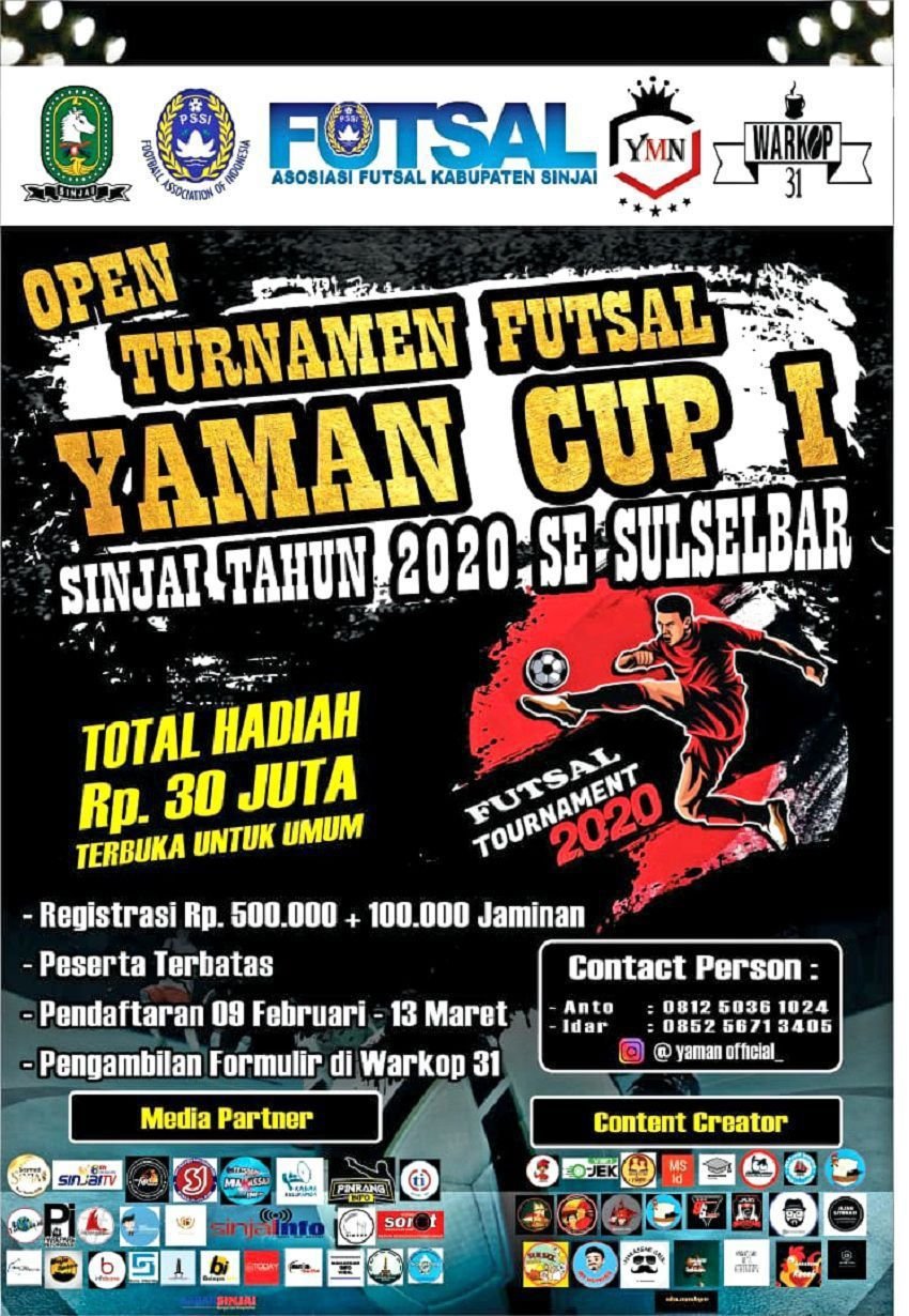 Pemuda Yaman (Yahya Mathan) akan menggelar Turnamen Futsal se-Sulselbar pada 16 Maret 2019 mendatang dengan total hadiah Rp.30.000.000.