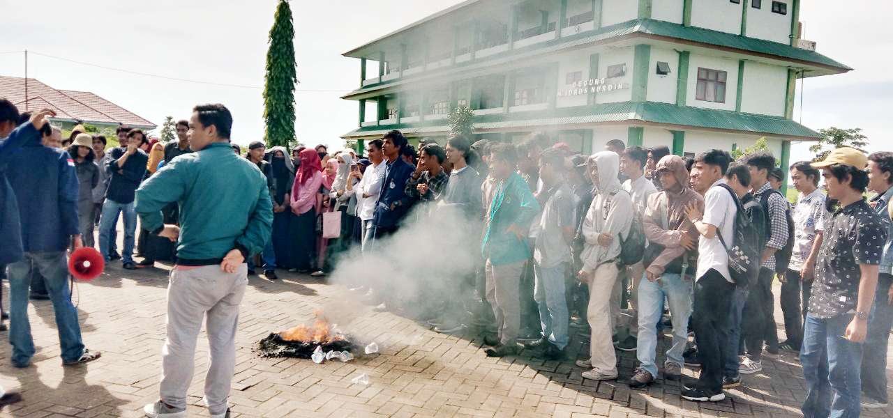 Puluhan mahasiswa Fakultas Ekonomi dan Bisnis (FEB) Universitas Muslim Maros (UMM) menggelar aksi unjuk rasa di Kampus II UMM Jl Kokoa, Kelurahan Allepolea, Kecamatan Lau, Kabupaten Maros, Senin (09/03/2020) siang sekitar pukul 14.00 Wita.