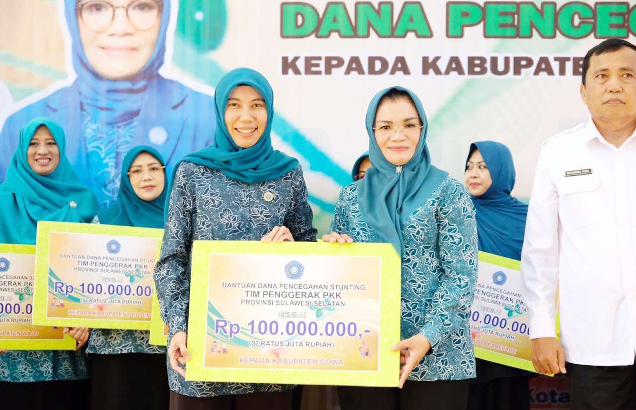 "Alhamdulilah angka stunting di Sulsel menurun lima persen. Maka hari ini, bantuan dari Pemerintah Provinsi Sulawesi Selatan sebesar Rp100 juta untuk seluruh ibu Ketua PKK Kabupaten/Kota di Sulsel dalam rangka membantu program pemerintah untuk menekan angka stunting,” ujarnya.
