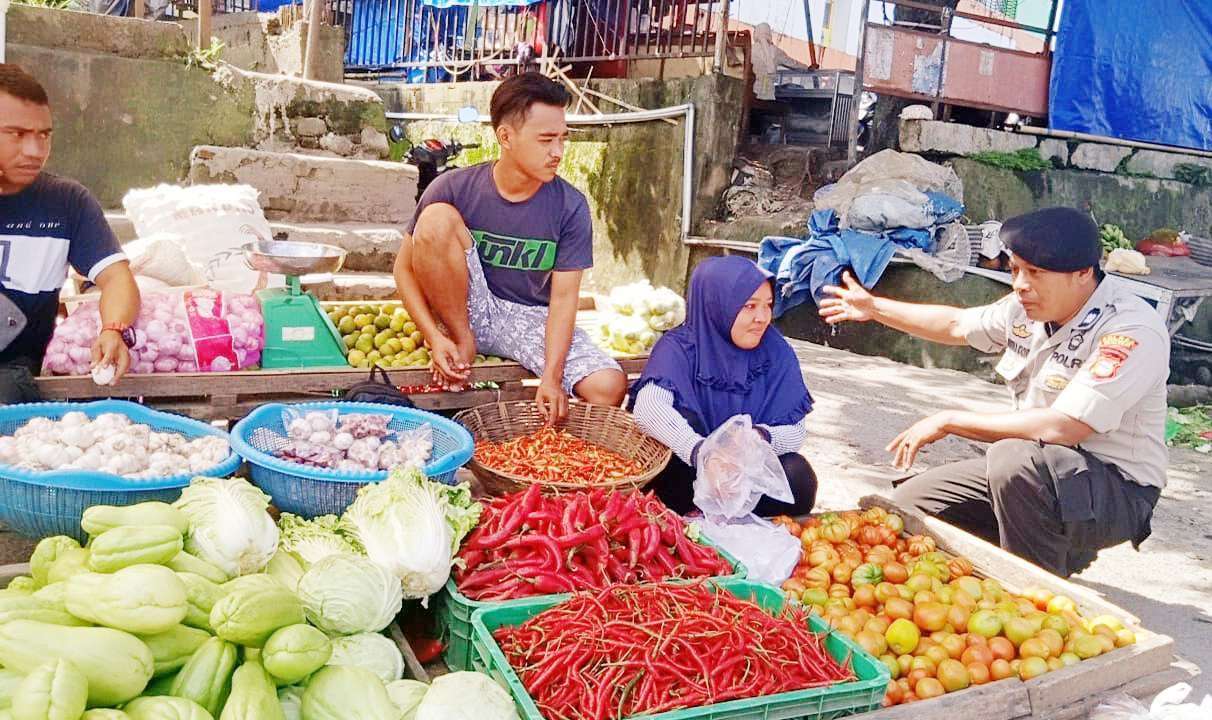 "Selain patroli di pasar, kami juga memberikan himbauan kamtibmas dan mengajak pedagang menjaga lingkungannya bersama-sama serta memantau perkembangan harga," kata Brigpol Asgar.