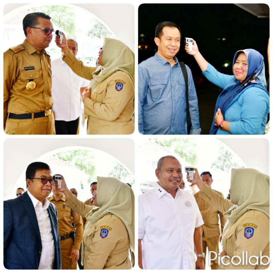 Pemprov Sulsel meningkatkan pengawasan bagi pegawai hingga tamu untuk tindakan preventif penyebaran virus korona atau Covid-19. Salah satu upaya yang dilakukan, yakni dengan melakukan pengecekan suhu tubuh setiap orang yang masuk ke rumah jabatan Gubernur Sulsel di Jalan Sungai Tangka dengan menggunakan termo gun.