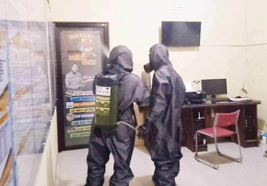 Jika beberapa hari yang lalu Polres Gowa menyiapkan cairan pembersih tangan atau hand sanitizer yang mengandung antiseptik, kemudian pada Selasa (17/03/2020) ini dengan melakukan penyemprotan cairan desinfektan.