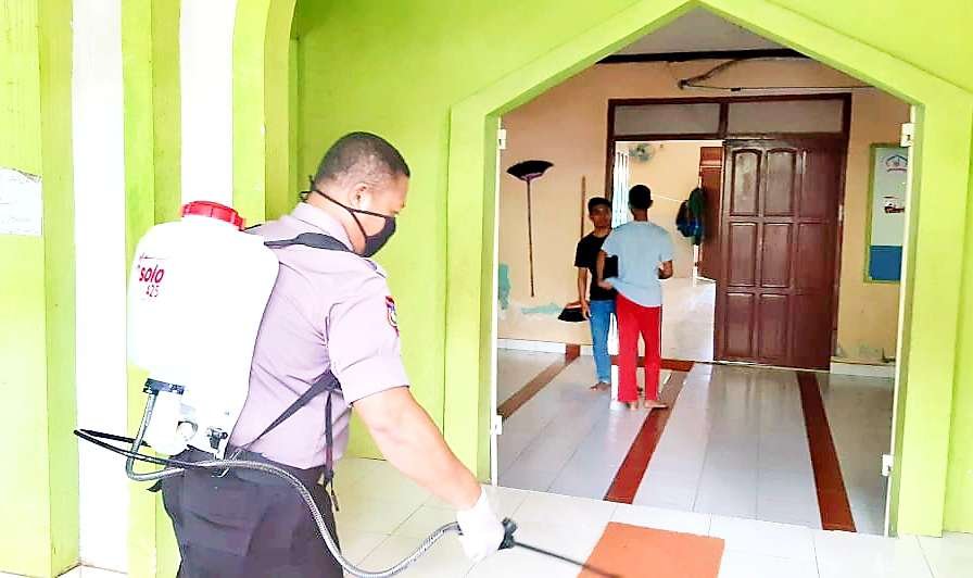Dalam kegiatan itu, Bhabinkamtibmas ikut serta membantu dari pihak Puskesmas melakukan penyemprotan terhadap ruangan-ruangan di Kantor Lurah dan Mesjid guna mencegah virus corona yang saat ini marak diperbincangkan di kalangan masyarakat.