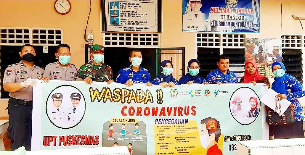Pada Jumat (20/03/2020) pagi pukul 09.30 Wita, bertempat di Kantor Lurah Bontoramba, Lingkungan Bontobaddo, Kelurahan Bontoramba, Kecamatan Somba Opu, Kabupaten Gowa, Bhabinkamtibmas Bontoramba Aipda M. Jufri, SH bersama Camat Somba Opu, Kapolsek Somba Opu, Danramil dan Kepala Puskesmas Samata bersama Stafnya melakukan penyemprotan cairan disinfektan.