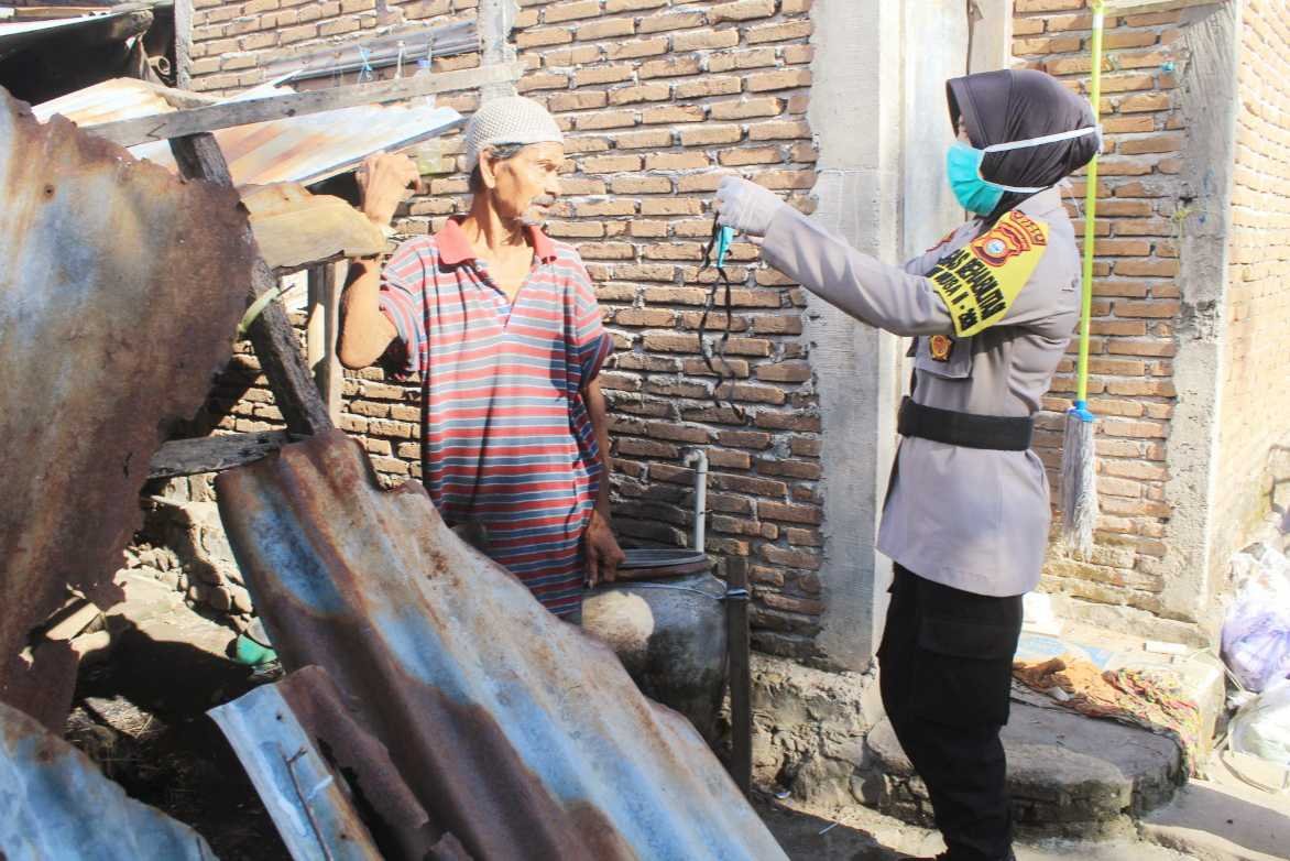 Hal itu terlihat sebelum memberikan bingkisan sembako kepada warga tersebut, dimana Kompol Nursiah Abdullah prihatin atas kondisi seorang kakek yang tinggal sendiri disebuah gubuk reyot.