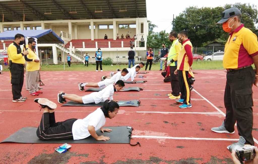 Adapun item tes yang diujikan yaitu Kesamaptaan A (Lari selama 12 Menit) dan Kesamaptaan B (Pull-up, Sit-up, Push-up dan Suttle-run) serta Antropometri. Semua item tes tersebut dilaksanakan sesuai ketentuan dan tetap memperhatikan petunjuk dan arahan Kapolri tentang pencegahan serta meminimalisir penyebaran virus Corona (COVID-19) dengan cara :