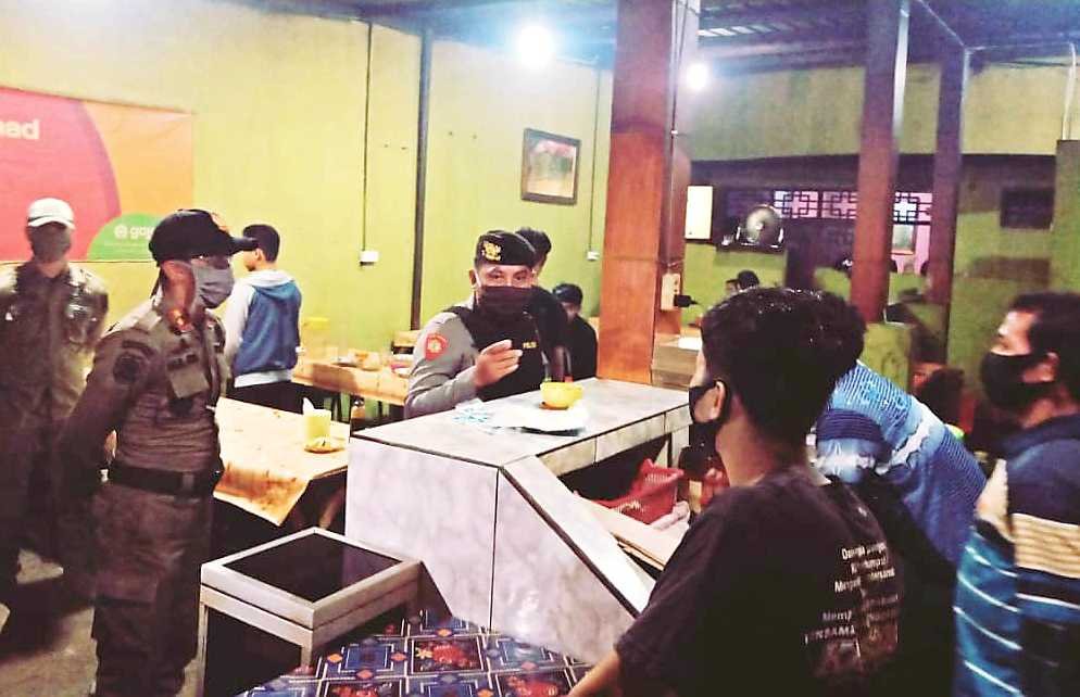 Tampak saat tim patroli gabungan melitas disepanjang jalan terus memberikan imbauan dengan menggunakan pengeras suara dengan pesan untuk tetap menjaga jarak, menggunakan masker, dan selalu mencuci tangan.