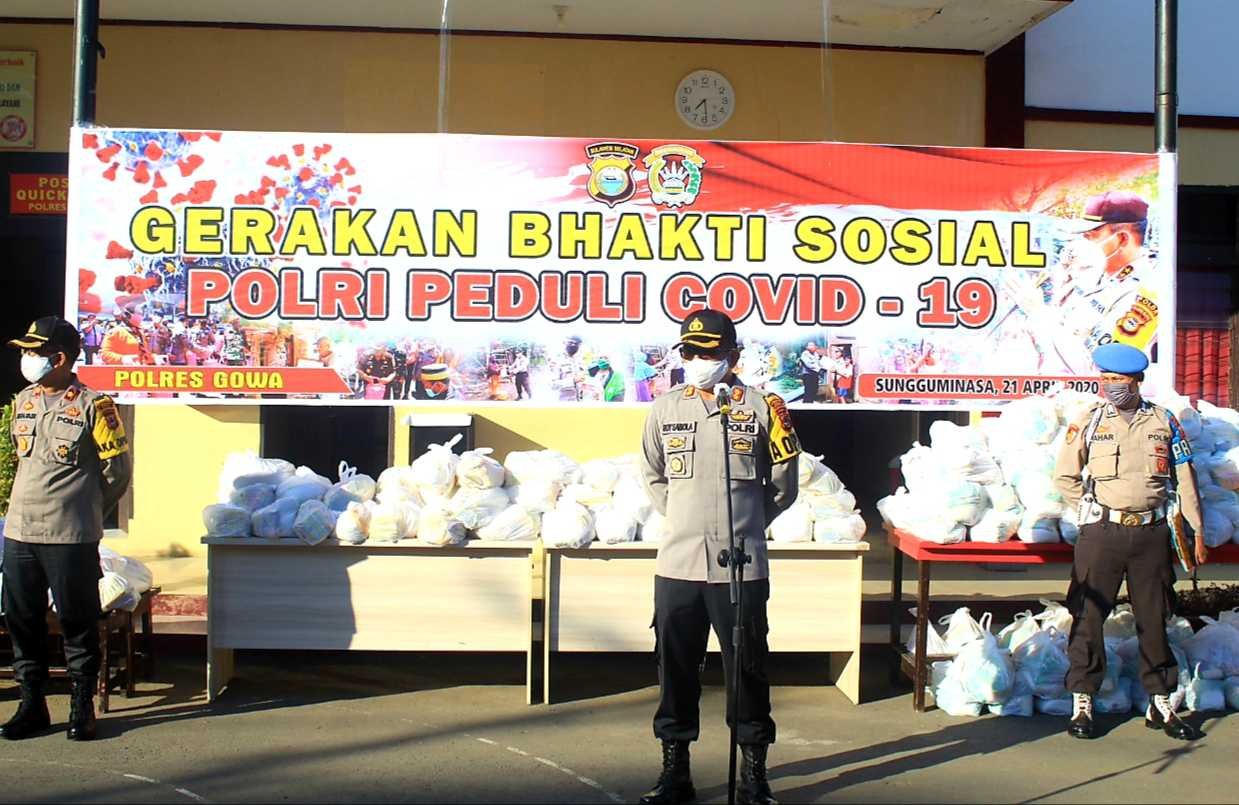 Ditengah-tengah kepadatan aktifitasnya, Kapolres Gowa AKBP Boy FS Samola, SIK, MH bersama personilnya melaksanakan kegiatan bakti sosial Peduli Covid-19 di 18 kecamatan dalam wilayah Kabupaten Gowa, Selasa (21/04/2020) pagi.