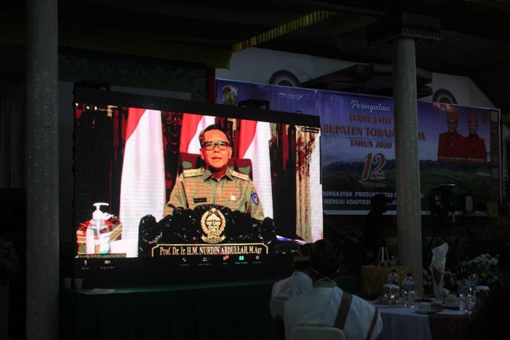Meski demikian, Nurdin Abdullah mengaku sangat menyesal tidak bisa hadir secara langsung pada HUT Toraja Utara yang ke 12 ini. Pasalnya, ada kabar dari Istana Negara bahwa Presiden Republik Indonesia Ir Joko Widodo akan berkunjung ke Sulsel untuk menjenguk saudara-saudara kita di Luwu Utara.