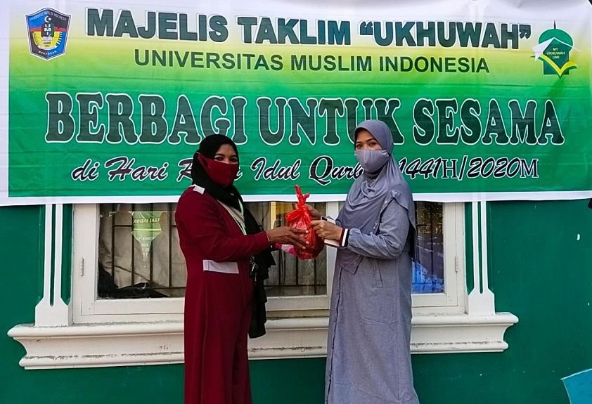 Majelis Taklim Ukhuwah Universitas Muslim Indonesia (UMI) kembali melakukan kegiatan sosial dengan membagikan hewan qurban kepada Satpam dan cleaning service yang bekerja dalam lingkup UMI, di pelataran Masjid Al Adawiyah, Kompleks UMI, Sabtu (01/08/2020) kemarin.