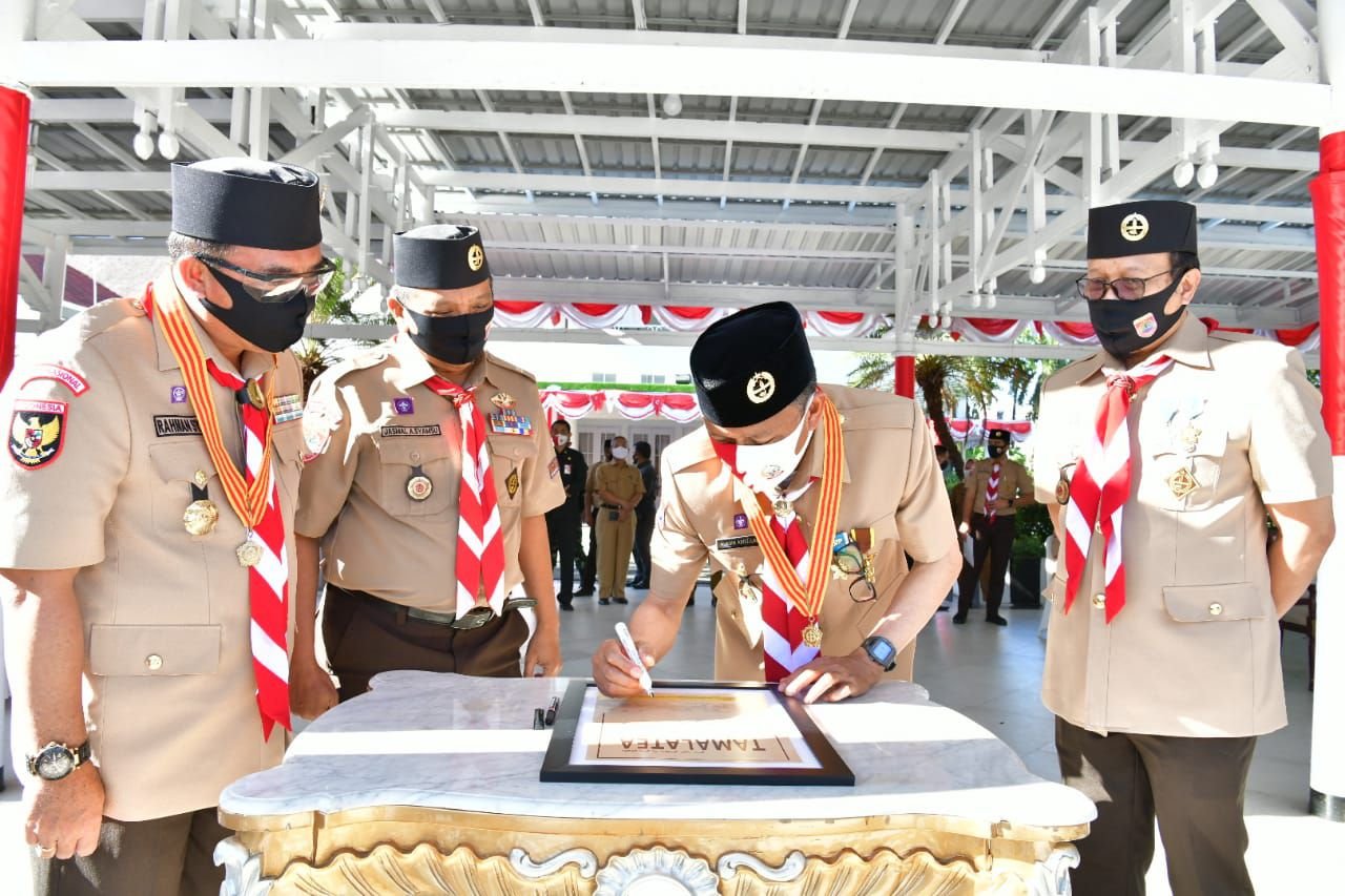 Ketua Majelis Pembimbing Gerakan Pramuka Sulsel, Prof HM Nurdin Abdullah, meresmikan jurnal Tamalate. Peresmian ini didampingi juga Wakil Ketua Majelis Pembimbing Gerakan Pramuka Sulsel Andi Sudirman Sulaiman, Ketua Harian Gerakan Pramuka Haris Yasin Limpo, dan pengurus Gerakan Pramuka Sulsel lainnya.