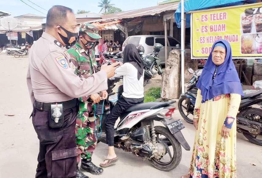 kepada masyarakat di Pasar Sentral Limbung, Kecamatan Bajeng, Kabupaten Gowa, untuk disiplin mengikuti protokol kesehatan terkait Covid-19, Jumat (21/08/2020).