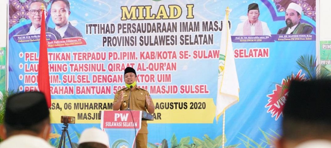 Tahun pertama kerukunan Ittihad Persaudaraan Imam Masjid (IPIM) Provinsi Sulawesi Selatan (Sulsel), digelar di Masjid Raya Makassar, Selasa (25/8/2020). Rangkaian kegiatan ini antara lain pelantikan terpadu PD IPIM Kabupaten/Kota Se-Sulsel, launching tahsinul qiraat Al- Qur'an, penyerahan bantuan 500 Imam Masjid Sulsel, serta pelantikan PD IPIM.