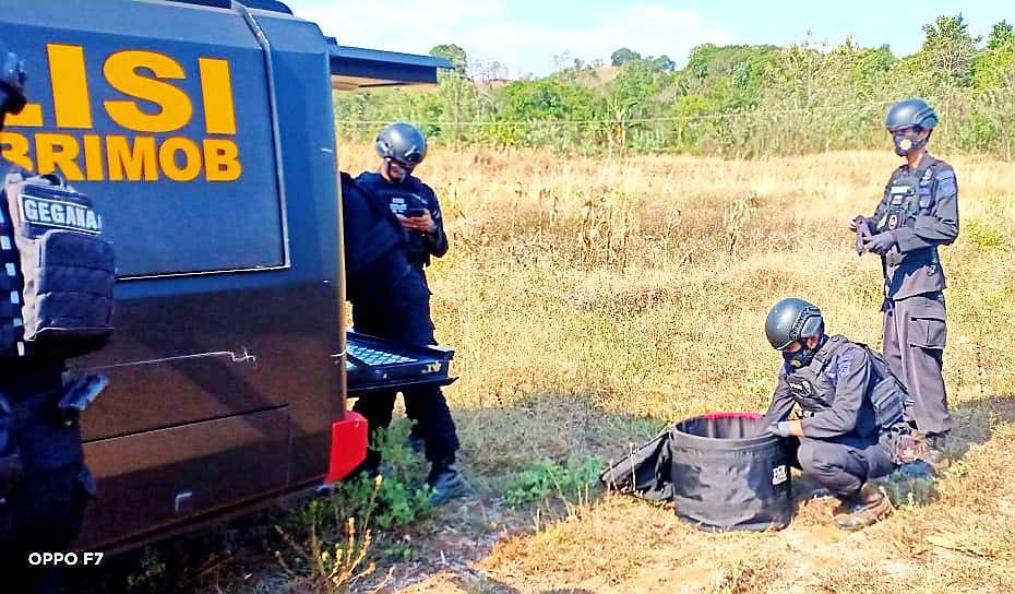 Selanjutnya pada pukul 13.55 Wita, Unit Jibom Polda Sulsel yang dipimpin Ipda Munir tiba di lokasi langsung melakukan penanganan terhadap 1 buah mortir dan 2 proyektil kaliber besar.