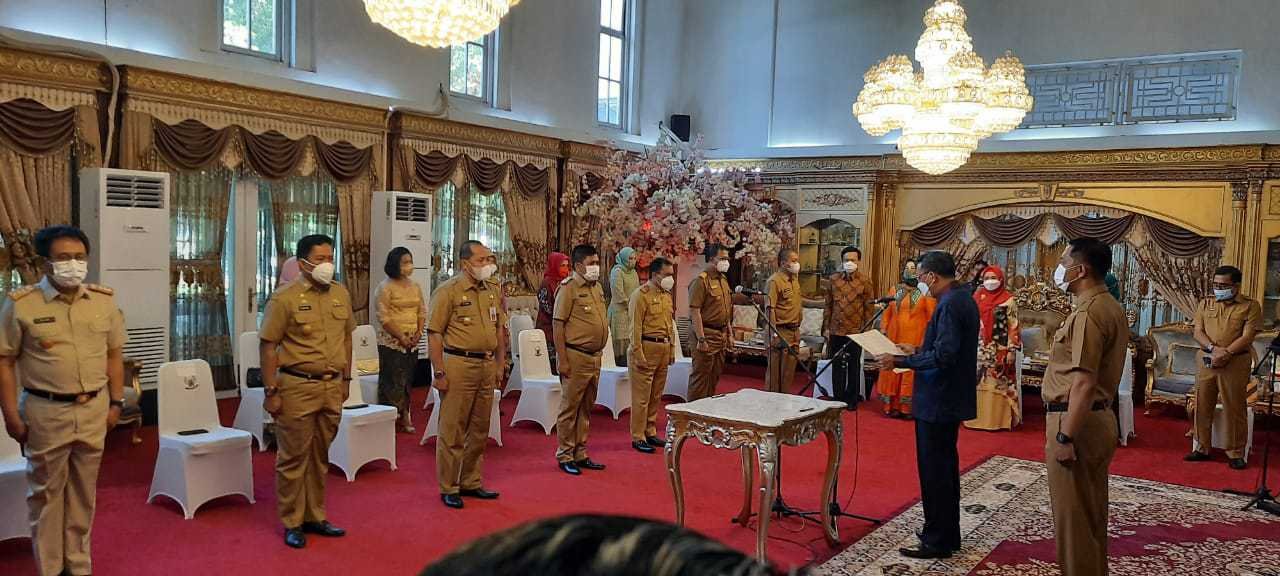 Gubernur Sulawesi Selatan (Sulsel), Prof HM Nurdin Abdullah, melakukan pengukuhan pada tujuh penjabat sementara bupati, di Rumah Jabatan Gubernur, Sabtu (26/9/2020) pagi.