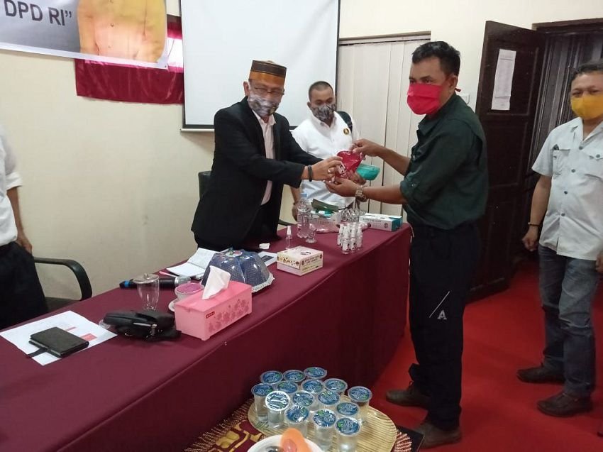 "Ini merupakan inisiati saya selaku anggota DPD RI yang diminta melakukan kunjungan kerja ke daerah pemilihan dengan melakukan berbagai kegiatan. Salah satunya, membuat kegiatan dengan masyarakat, membagai masker dan handsanitizer," katanya.