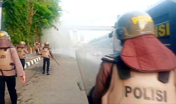 Karena tidak mau membubarkan diri, polisi akhirnya mencoba untuk memukul mundur massa yang berubah anarkis. Bahkan demonstran yang bertahan melempar polisi dengan batu sehingga bentrok antara polisi dan masa aksi tidak dapat dicegah.