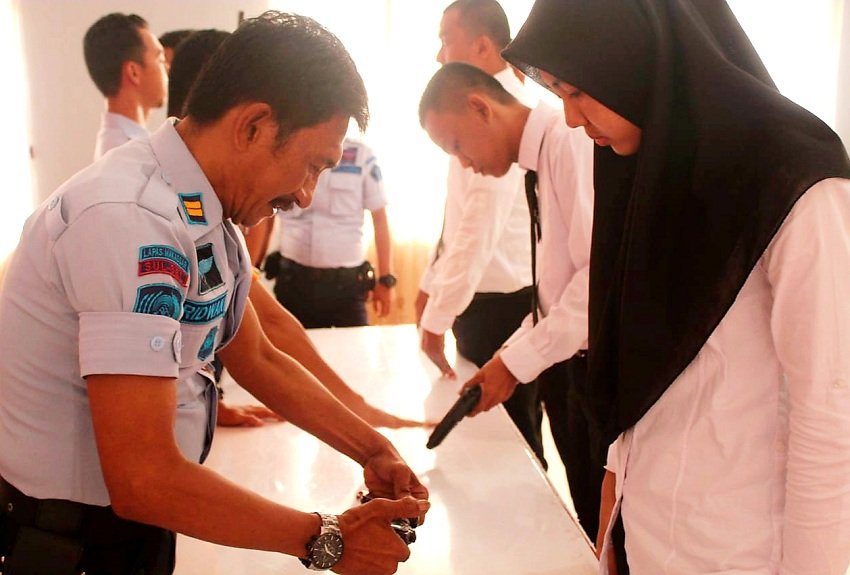 Bertempat di Aula Lapas Kelas I Makassar pukul 09.00 Wita yang dipimpin langsung oleh Kepala Seksi Keamanan Lapas Makassar, Ichsan dan didampingi Kepala Seksi Pelaporan Lapas Makassar, Santy beserta beberapa staff yang ahli dalam bidang persenjataan Lapas Kelas I Makassar.