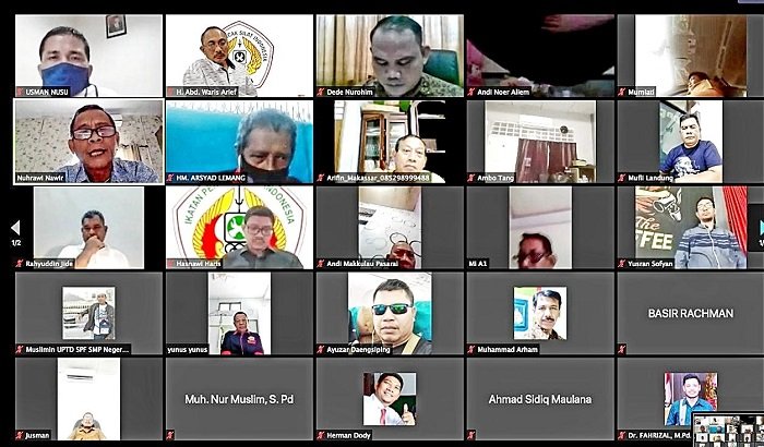 Rapat Perdana Pengurus IPSI (Ikatan Pencat Silat Indonesia) Provinsi Sulsel, Senin (18/01/2021) sore kemarin berlangsung secara Virtual, pasca terbitnya SK Pengprov IPSI Sulsel dari PB IPSI.