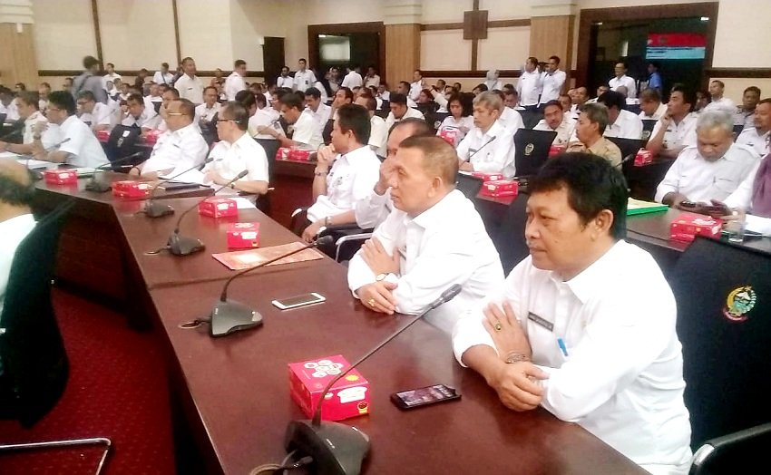 Rapat koordinasi (rakor) rencana aksi pencegahan korupsi berlangsung di Ruang Rapat Pimpinan Kantor Gubernur Sulawesi Selatan, Rabu (13/02/2019). Dihadiri Deputi Pencegahan KPK Pahala Nainggolan, Wakil Gubernur Sulsel Andi Sudirman Sulaiman, Forkopimda Sulsel, Bupati dan Walikota se-Sulsel, dan unsur terkait lainnya.