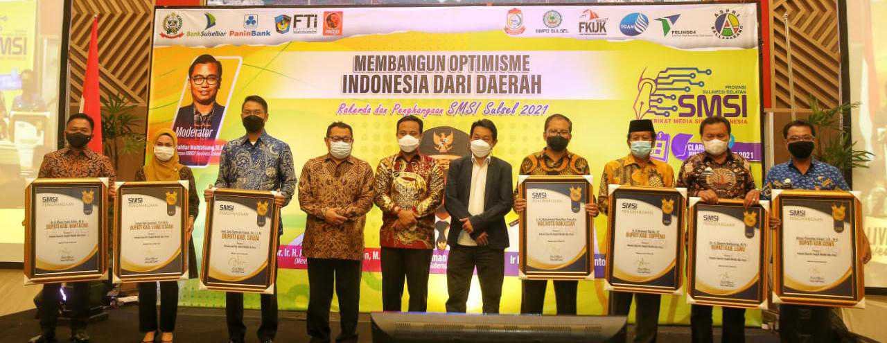 Bupati Luwu Utara (Lutra), Indah Putri Indriani memperoleh penghargaan dari pengurus provinsi Serikat Media Siber Indonesia (SMSI), kategori Bupati peduli wartawan dan media.
