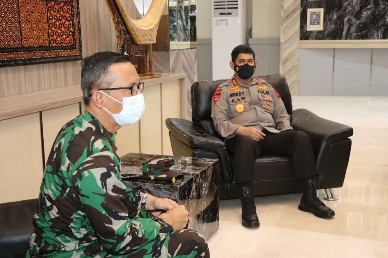 Kapolda Sulawesi Selatan Irjen Pol Drs. Merdisyam, menerima kunjungan Silaturahmi Komandan Lanud Sultan Hasanuddin Marsma TNI Danet Hendriyanto, S.Sos.. di Mapolda Sulsel, Selasa (20/4/2021).