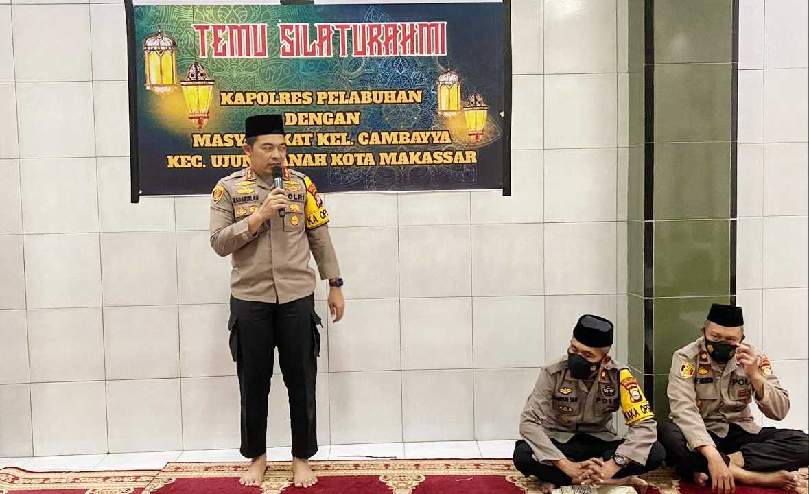 Melalui silaturahmi dengan masyarakat, Kapolres Pelabuhan Makassar AKBP Muhammad Kadarislam Kasim berikan imbauan tetap patuhi protokol kesehatan dan jangan mudik kepada masyarakat Kelurahan Cambayya, Kecamatan Ujung Tanah, Kota Makassar.