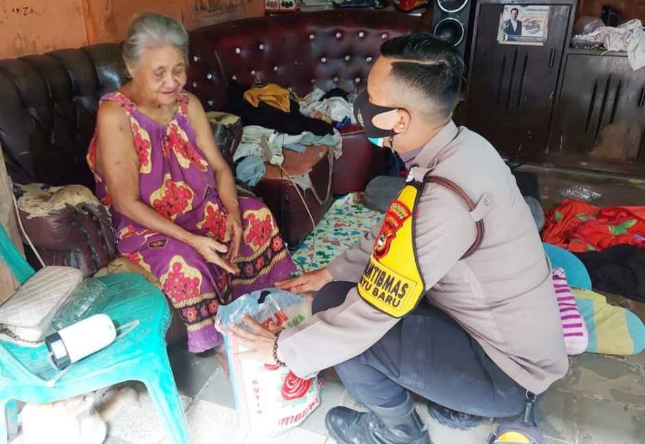 Semangat untuk berbagi kepada warga masyarakat tak pernah pudar saat masa pandemi Covid-19, sebagaimana yang dilakukan oleh para Bhabinkamtibmas Melayu Baru Bripka Hartawan, Selasa (18/05/2021).