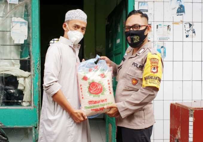 Guna meringankan beban warga binaannya, Bhabinkamtibmas Pattingalloang salurkan bantuan sembako berupa beras dari Kapolres Pelabuhan Makassar AKBP Kadarislam, Kamis (20/05/2021).