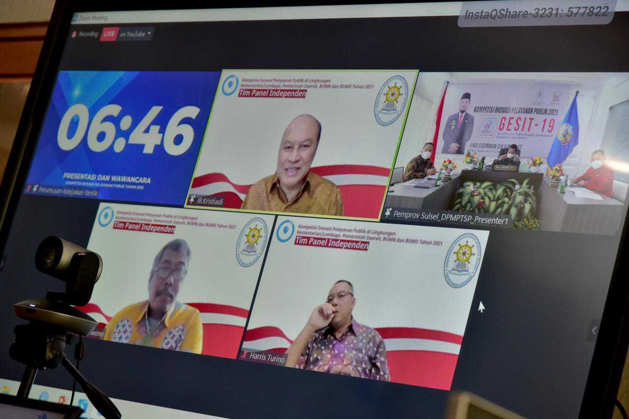 Inovasi Gesit-19 (Gerai Perizinan Sektor Perikanan dan Kelautan) yang merupakan inovasi unggulan Dinas Penanaman Modal dan PTSP Provinsi Sulsel terpilih menjadi finalis 99 top inovasi pada ajang Kompetisi Inovasi Pelayanan Publik (KIPP) tahun 2021, yang diselenggarakan Kemenpan RB. Saat ini memasuki tahap seleksi 45 besar.