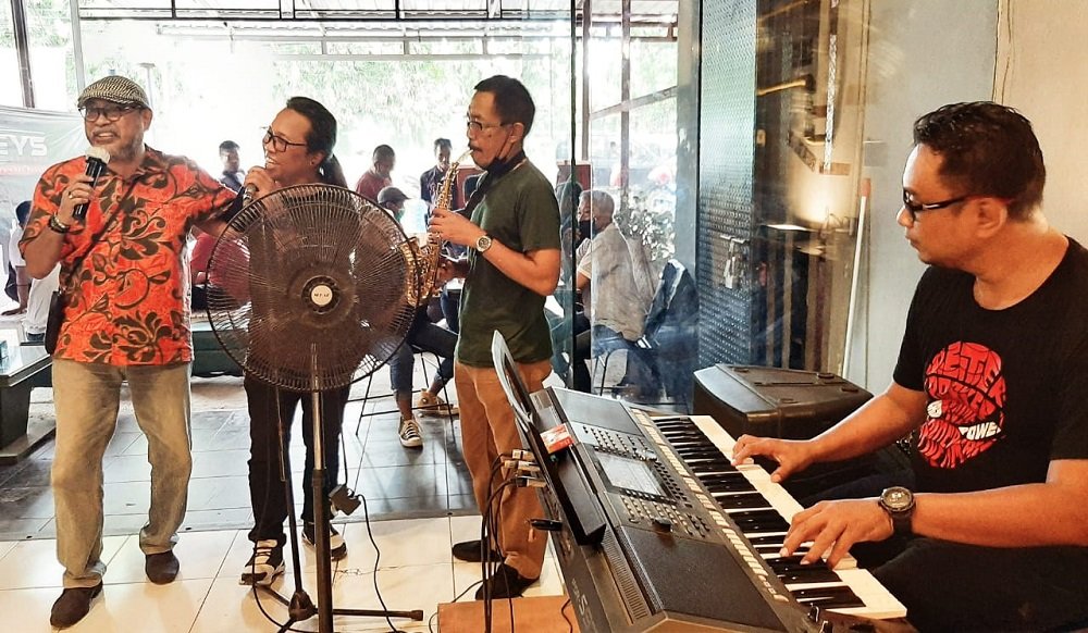 Puluhan musisi dan vokalis senior yang ada di Kota Makassar dan bahkan dari beberapa kabupaten di Sulsel seakan tumpah memeriahkan pembukaan kembali Warkop Cafe-In yang berlokasi di Jln Sultan Alauddin II Makassar, Minggu (29/08/2021) siang hingga malam hari.