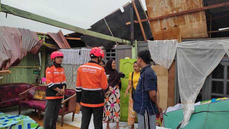 Tim Badan Amil Zakat Nasional (BAZNAS) Kota Makassar dipimpin Komandan Baznas Tanggap Bencana (BTB), Junaidi membantu korban angin puting beliung di Jalan Dg Tantu, RT 6 dan RT 3 Rappokaling, Kelurahan Rappokaling, Kecamatan Tallo, Kota Makassar.