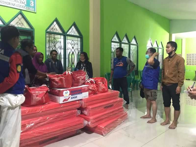 Penyerahan bantuan di dua wilayah di Makassar, yakni Perumahan BTN Kodam 3, Kelurahan Katimbang, Kecamatan Biringkanaya dan Kelurahan Manggala, Kecamatan Manggala, Jumat dini hari, 21 Januari 2022.