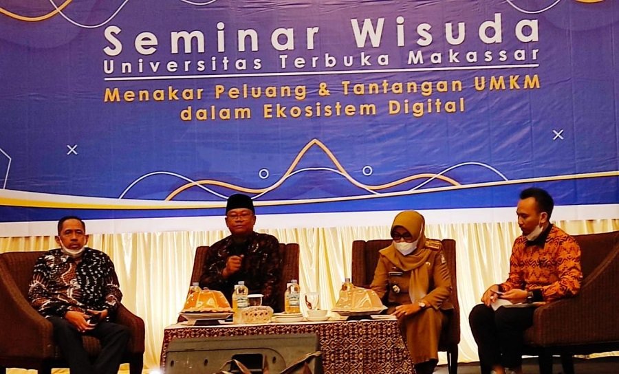 Demikian ditegaskan Rektor UT, Prof Ojat Darojat didampingi Direktur UT Makassar, Drs Hasanuddin, M.Si saat membuka seminar dengan tema "Menakar Peluang dan Tantangan UMKM dalam Ekosistem Digital" yang diselenggarakan UT Makassar pada Senin 24 Januari 2022 di Hotel Claro Makassar.