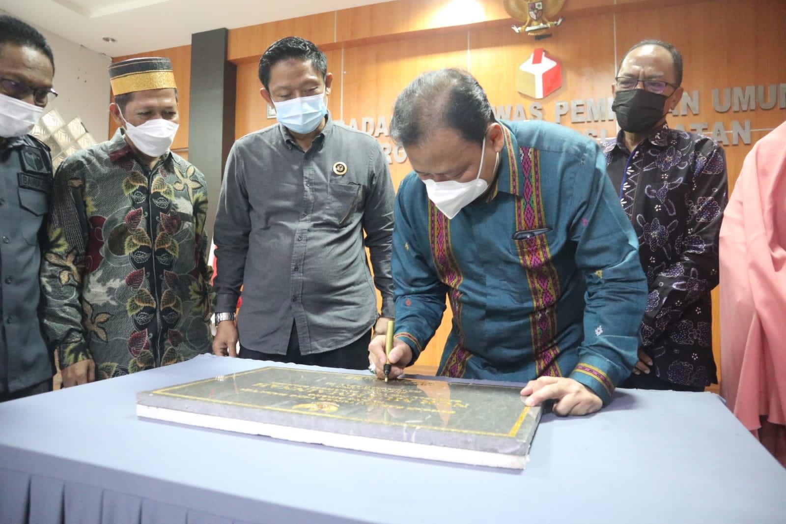 Ketua Bawaslu RI Abhan, SH, MH pada Senin (31/01/2022) meresmikan Ruang Sidang Nur Muthmainnah Kantor Bawaslu Provinsi Sulawesi Selatan.