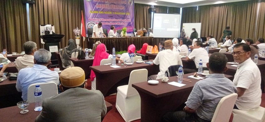 MUSYAWARAH Besar (Mubes) Pertama Alumni SMAN 3 (Smaga) Makassar 1982, berlangsung di Lt. 7 di Ramedo Hotel Jl. Andi Jemma Makassar, Minggu (06/02/2022).