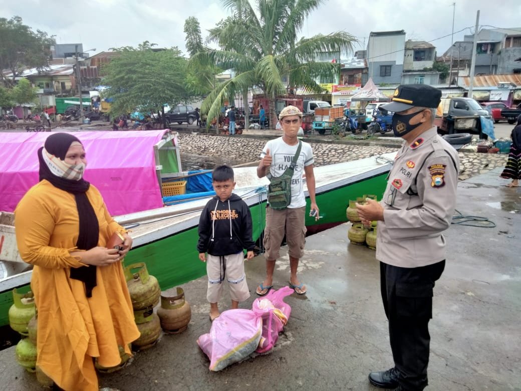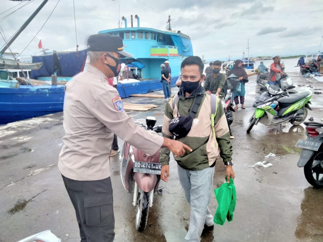 Pendisiplinan masyarakat pulau dan nelayan dalam penerapan protokol kesehatan (prokes), Unit Binmas Polsek Paotere Polres Pelabuhan Makassar lakukan pengawasan disetiap kegiatan warga yang berada di dermaga Pelabuhan Paotere.
