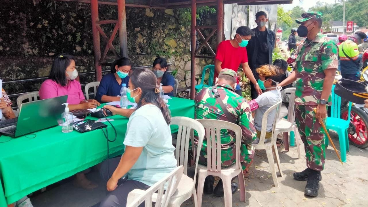 Sinergitas Dandim 1414 Tana Toraja dan Kapolres Toraja Utara, tampak saat meninjau pelaksanaan imunisasi (vaksinasi) corona virus di Rantepao, Minggu 27 Februari 2022.