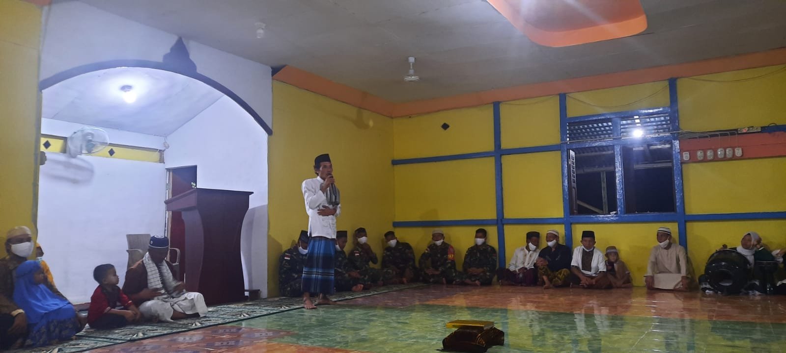Sebelum kegiatan dimulai, anggota Satgas membagikan masker kepada jemaah Masjid agar selalu mematuhi protokol kesehatan. (*)