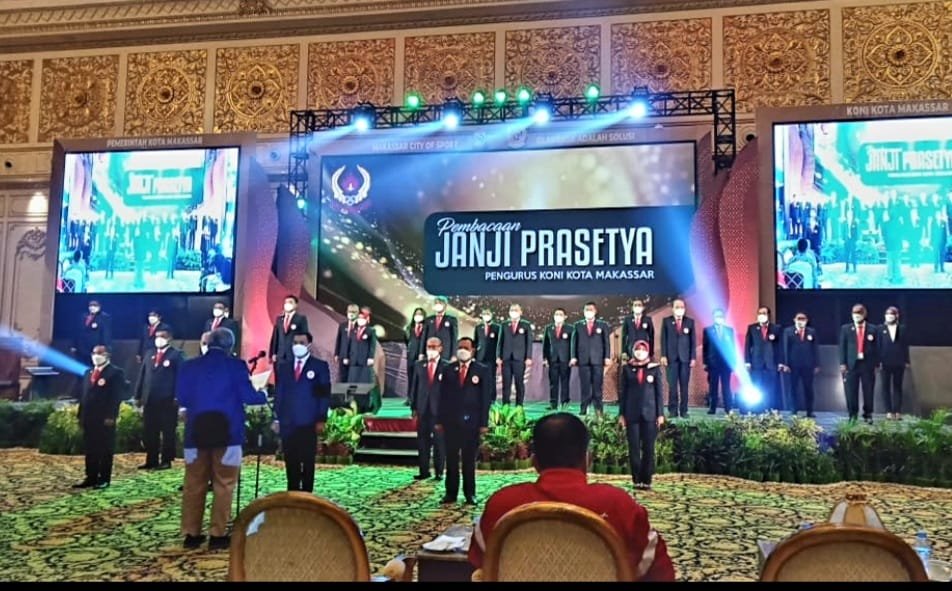 Komite Olahraga Nasional Indonesia yang merupakan akronim dari KONI Kota Makassar, menggelar kegiatan Pelantikan Pengurus untuk periode 2022 hingga 2026, dengan mengusung tema 'Olahraga Adalah Solusi Makassar City Of Sport', di Diamond Ballroom, Myko Hotel Makassar, Kamis (17/03/2022) malam.