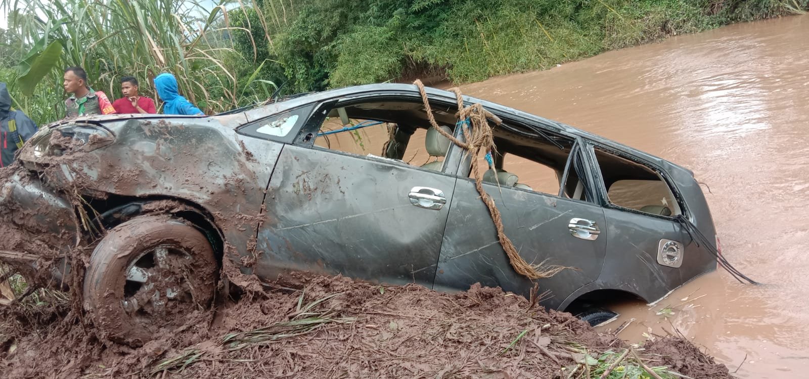 Satu unit mobil mini bus Toyota Innova, nomor polisi DP 1481 KC warna krem, dikemudikan Vebrianto Salombe (28) warga Tagari, Toraja Utara, kecelakaan tunggal di To'kendi Salubarani, terjun ke dasar sungai sedalam 20 meter, Minggu (20/03/2022).