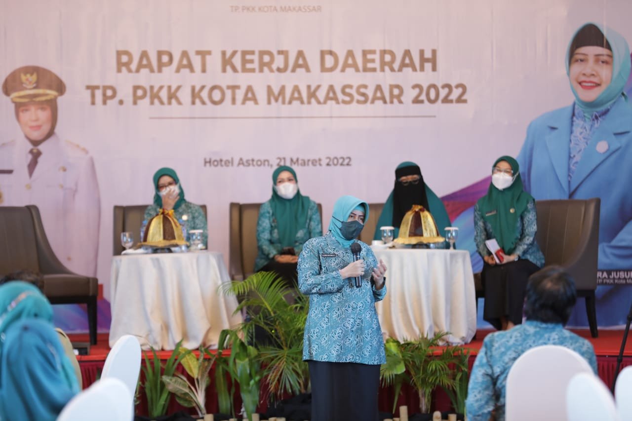 Tim Penggerak PKK Kota Makassar, gelar Rapat Kerja Daerah (Rakerda) Tahun 2022, yang digelar di Hotel Aston, Senin (21/03/2022).