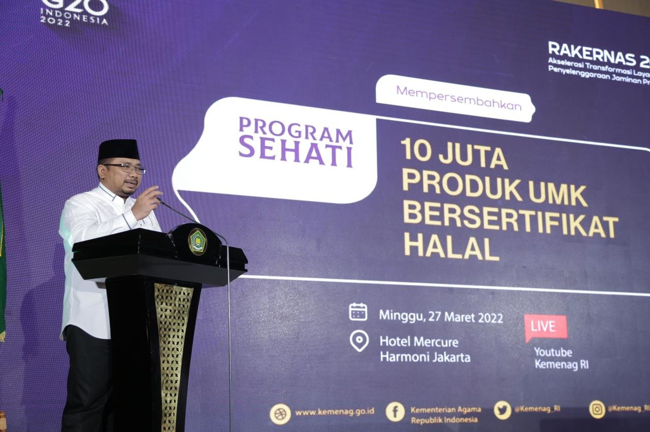 Menteri Agama (Menag) Yaqut Cholil Qoumas melaunching Program 10 Juta Produk Bersertifikat Halal pada Tahun 2022. Launching dilakukan bersamaan dengan pembukaan Rapat Kerja Nasional (Rakernas) Badan Penyelenggara Jaminan Produk Halal (BPJPH) Kemenag tahun 2022 yang mengusung tema "Akselerasi Transformasi Layanan Penyelenggaraan Jaminan Produk Halal".