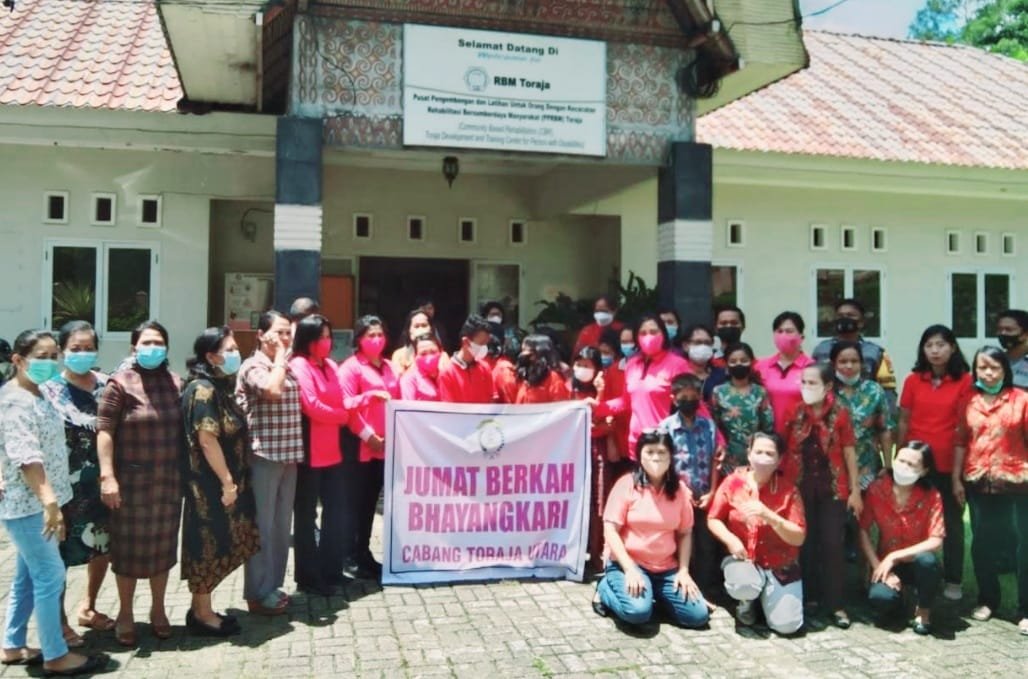 Kunjungan tersebut digelar di Tangmentoe Lembang (Desa) Angin-Angin, Kecamatan Kesu', Toraja Utara. Bhayangkari Polsek Sanggalangi berbagi kasih dengan membagikan nasi kotak kepada orang cacat yang ada di Rehabilitasi Bersumberdadi Masyarakat (RBM).