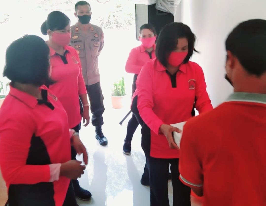 Kapolsek Sanggalangi Iptu Yos Sudarso dan Pengurus Bhayangkari disambut Milka Sarungallo Lande selaku Direktur RBM dan Elri Tandirerung sebagai Ketua Yayasan RBM.