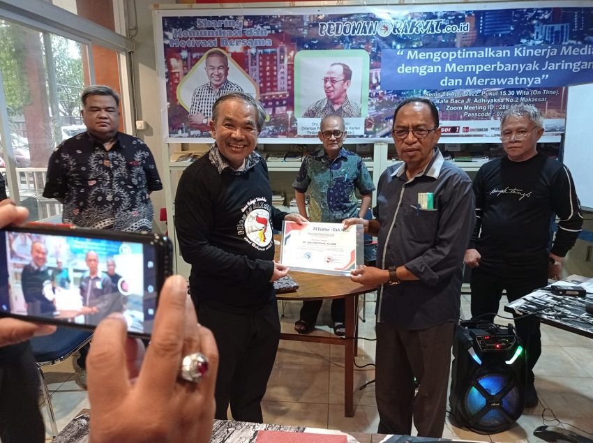 Kehadiran motivator Dr. Aqua Dwipayana, M.I.Kom berbagi pengetahuan dan pengalaman dengan kru Pedoman Rakyat (PR) di Kafe Baca Makassar, Senin (04/04/2022) bagaikan saling menikmati berkah Ramadan 1443 H.