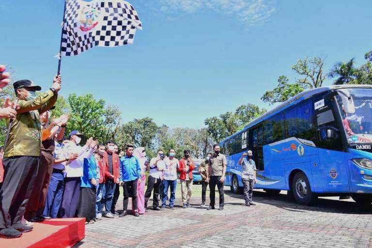 “Semoga perjalanan menuju ke daerah tujuan lancar dan selamat. Salama ki Tapada Salama,” ucapnya usai melepas peserta mudik.
