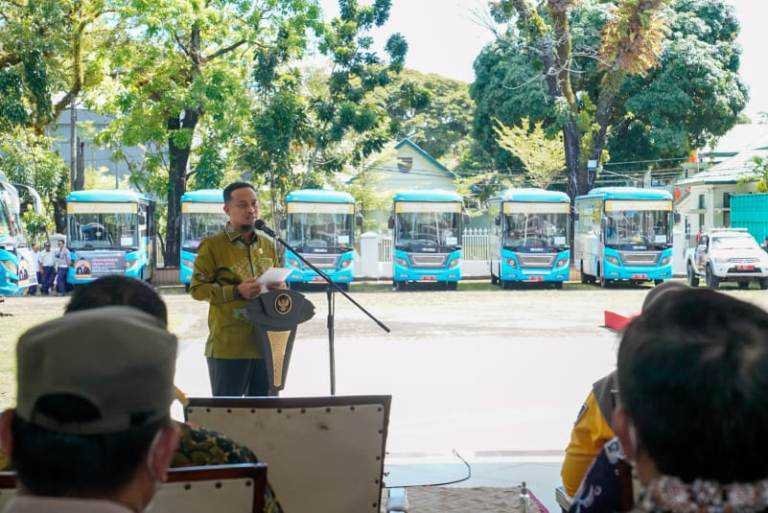 Gubernur Sulawesi Selatan Andi Sudirman Sulaiman melepas pelaksanaan mudik gratis bagi mahasiswa dan masyarakat umum yang dilaksanakan Pemprov Sulsel di pelataran Rujab Gubernur, Kamis (28/4/2022).