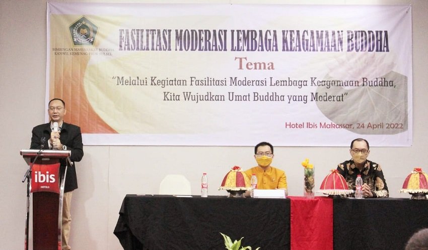 Kegiatan bertema "Melalui Kegiatan Fasilitasi Moderasi Lembaga Keagamaan Buddha, Kita Wujudkan Umat Buddha yang Moderat" berlangsung di ibis Makassar City Center, Makassar pada Minggu (24/04/2022).