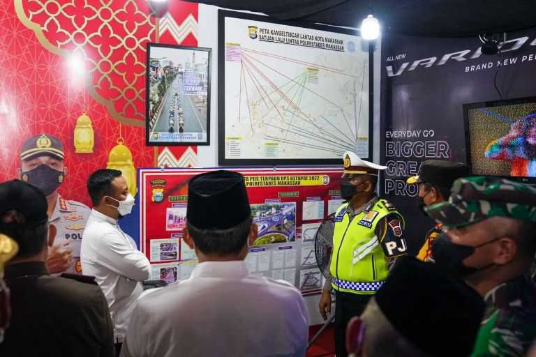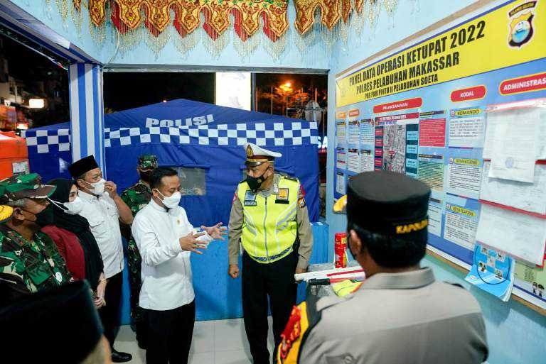Gubernur Sulawesi Selatan, Andi Sudirman Sulaiman bersama Forkopimda memantau sejumlah pos pengamanan dan pos terpadu pada Operasi Ketupat di wilayah Kota Makassar, Minggu malam, 1 Mei 2022.
